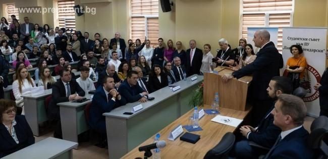 Президентът Румен Радев изнесе лекция пред студенти на Пловдивския университет „Паисий Хилендарски“
