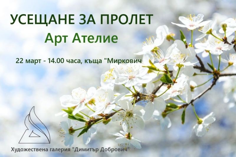 Този уикенд в къща "Миркович" ще се проведе арт ателие, посветено на пролетта. Пролетта носи усещане за ново начало и пробуждане, а с нея идва и възможност за творчество. Арт ателиетата в галерията канят всички да се вдъхновят от сезона и да създадат свои произведения в приятна и творческа атмосфера.