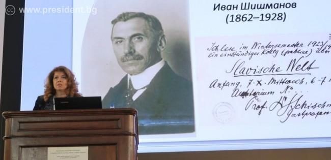 В словото си Йотова цитира думите на проф. Шоре, че величието на един народ не се определя от броя на неговото население, а от неговата култура, история и духовност. Тя подчерта значението на проф. Иван Шишманов като изпреварил времето си учен и общественик, който е вярвал в идеята за „Европа на духа и сърцата“ още преди създаването на Европейския съюз.