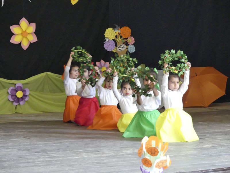 Децата от детската градина и училището приветстваха своите гости, сред които бяха кметът на Община Нова Загора Галя Захариева, заместник-кметът Ивайло Енев, секретарят Ангел Стойчев и началникът на отдел „Образование, младежки дейности“ Соня Петрова. Облечени в цветни костюми, малчуганите изпълниха песни, танци и стихотворения, с които създадоха празнично настроение сред публиката.