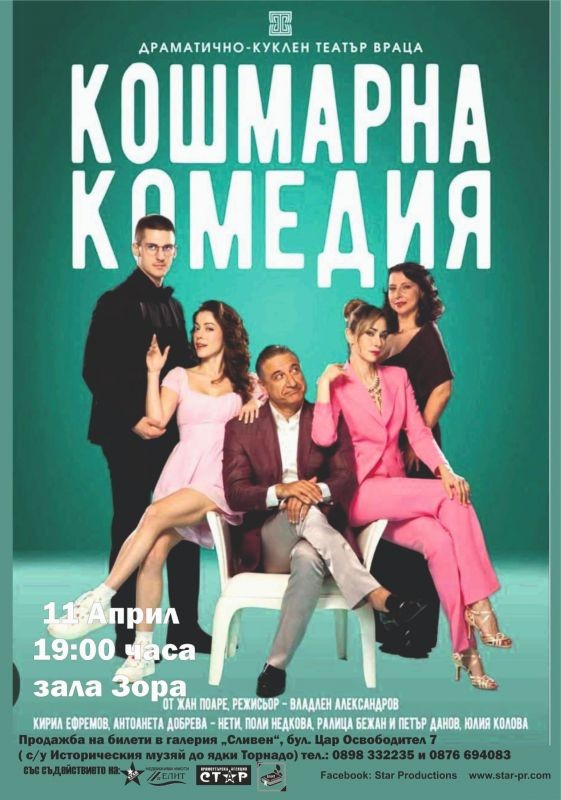 Драматично-куклен театър Враца ще представи на 11 април в Сливен пиесата "Кошмарна комедия".