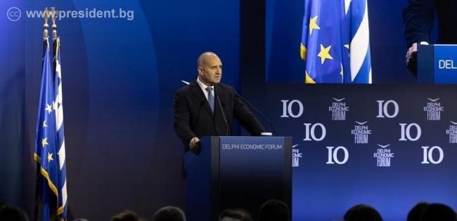 По време на участието си в Делфийския икономически форум президентът Румен Радев подчерта, че Европа може да отговори на съвременните предизвикателства, ако осъзнае значимостта им, увеличи амбициите си и предприеме решителни действия, като напусне зоната си на комфорт. Според него, въпреки различията в историческите гледни точки на Балканите, сътрудничеството между държавите е далеч по-ползотворно от конфронтацията.