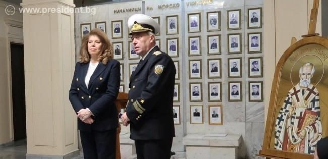 Флотилен адмирал проф. Калин Калинов изказа благодарност за подкрепата от президентската институция за мисията и военноморското училище. Йотова също така се запозна отблизо с дейностите на учебното заведение.