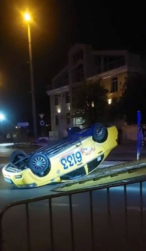 В петък вечерта около 22:30 ч. на кръговото при Розова градина в Сливен се е обърнало такси след сблъсък с автомобил марка „Мерцедес“. Според очевидци, инцидентът е станал внезапно, а в жълтото такси по това време е пътувала клиентка, съобщи slivenpress.