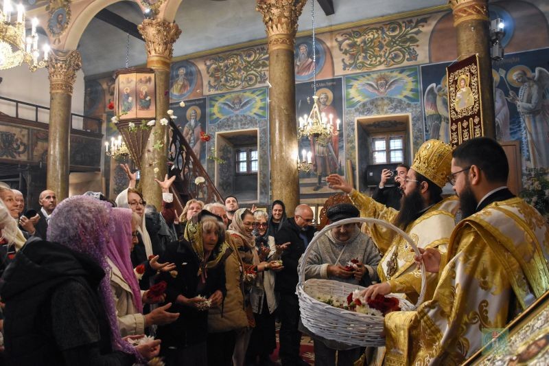 Митрополит Арсений разпръсна сред присъстващите цветя от Плащаницата, за да ги занесат у дома като благословия. По време на причастието той се обърна към вярващите с вдъхновяващо слово за Христовата победа и духовния смисъл на този ден.