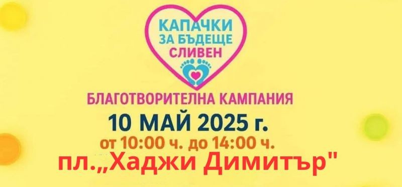На 10 май 2025 г. (събота), на площад „Хаджи Димитър“, в Сливен ще се проведе пролетна кампания за събиране на пластмасови капачки и алуминиеви кенчета, организирана от Клуб за Бъдеще Сливен. Благодарение на досегашната подкрепа са дарени 22 кувьоза, 7 детски и 2 офроуд линейки, както и над 40 медицински уреда, а съвместно са рециклирани над 1 милион килограма пластмаса.