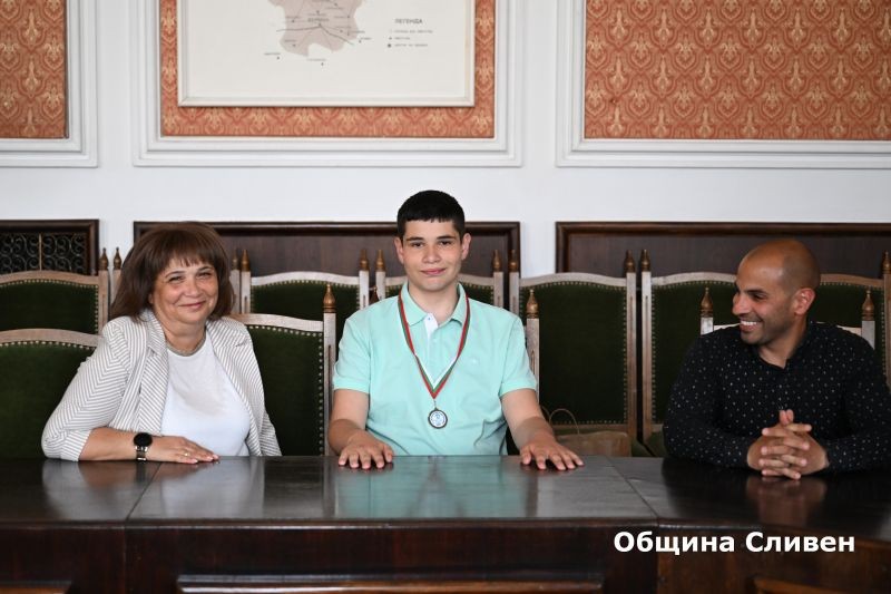Кметът на Сливен Стефан Радев се срещна със седмокласника Галин Стоянов – един от медалистите от Втория благотворителен турнир по адаптирано плуване в Габрово. Галин, заедно с още четирима съотборници от клуб „Смелите делфини“, спечели общо шест медала – четири златни, един сребърен и един бронзов.