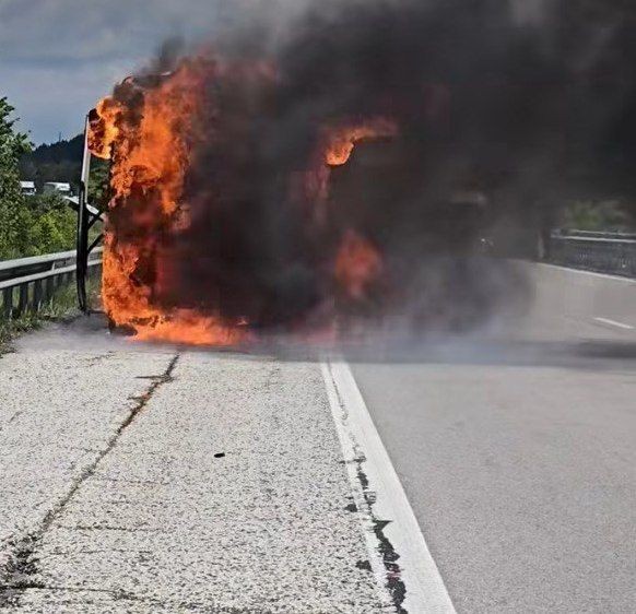 Гори автобус на АМ „Тракия“, движението към Бургас е пренасочено