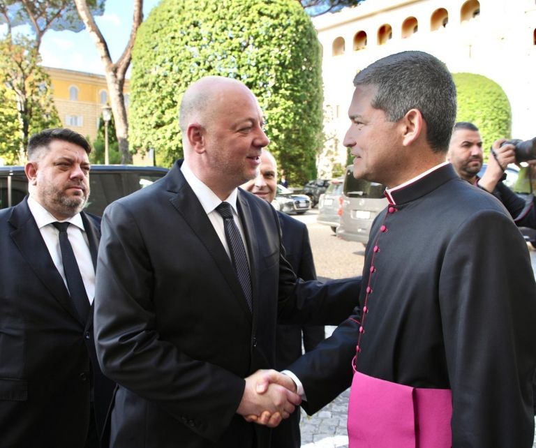 В българската делегация, водена от премиера, са включени вицепремиерите Атанас Зафиров и Гроздан Караджов, както и посланикът на България към Светия престол Костадин Коджабашев.