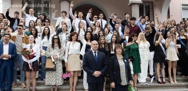 Радев подчерта, че истинският успех не се измерва с чужди погледи, а се усеща със сърцето, и призова младите хора да останат верни на ценностите, получени в училище. Той им пожела смелост, вдъхновение и човечност по пътя напред, като ги окуражи да обичат България и да работят за нейното бъдеще.