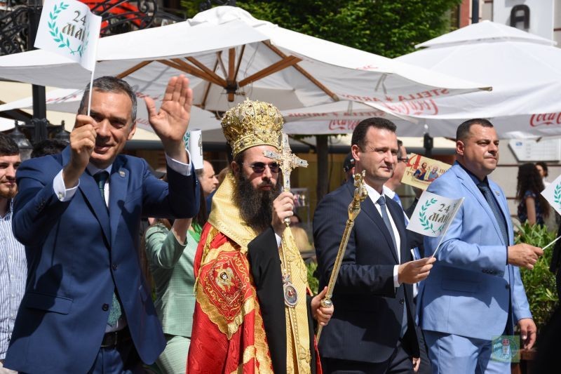 След края на шествието митрополит Арсений отслужи благодарствен молебен на открита сцена и поздрави присъстващите с празника на светите братя Кирил и Методий.