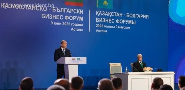 Президентът Румен Радев подчерта значението на Транскаспийския международен транспортен маршрут за транспортната, енергийната и дигиталната свързаност между Европа и Азия. Това изказване той направи по време на участието си в Казахстанско-българския бизнес форум в Астана, заедно с казахстанския президент Касъм-Жомарт Токаев.