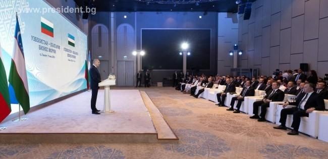 Президентът Румен Радев участва в заключителния панел на Узбекистанско-българския бизнес форум в Ташкент, част от официалното му посещение в страната по покана на узбекския му колега Шавкат Мирзийоев. В изказването си Радев подчерта, че историческите връзки и взаимното доверие между България и Узбекистан създават здрава основа за задълбочаване на бизнес отношенията, особено в контекста на стремежа на ЕС за по-добра свързаност между Европа и Азия.