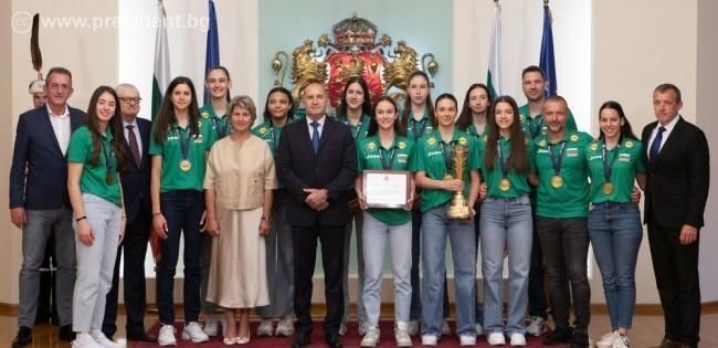 На церемония в Гербовата зала, в присъствието на председателя на Българския олимпийски комитет Весела Лечева, Радев поздрави състезателките и припомни, че точно преди година те са били удостоени с отличие за победата си на Европейското първенство до 18 години.