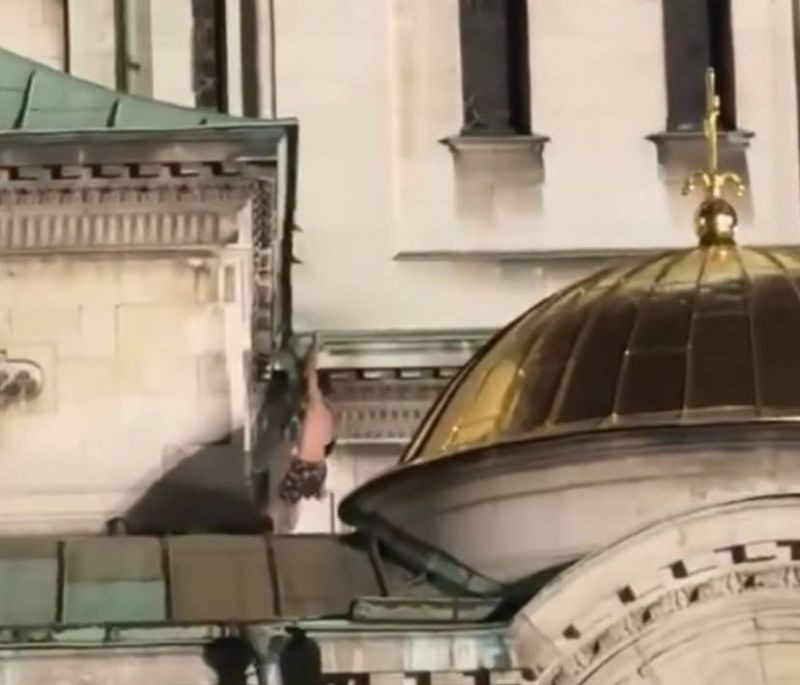 На 11 август в центъра на София минувачи и туристи станаха свидетели на необичайна гледка – полугол мъж се катереше по фасадата на патриаршеската катедрала „Св. Александър Невски“.