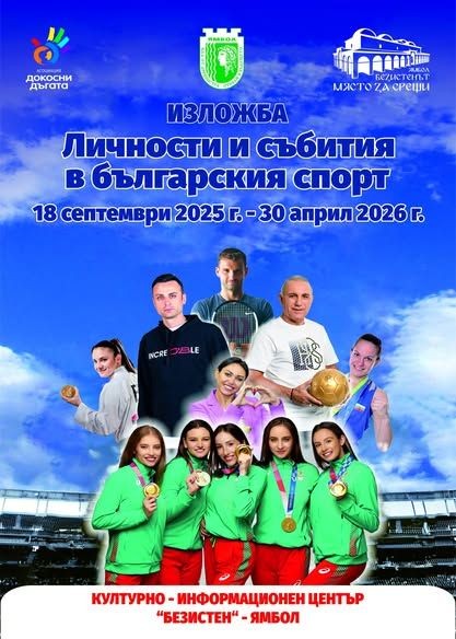 На 18 септември от 17:00 ч. в ямболския Безистен ще бъде открита изложбата „Личности и събития в българския спорт“. Тя представя над 400 ценни експоната на олимпийски шампиони, световни и европейски първенци, както и международни спортни легенди.