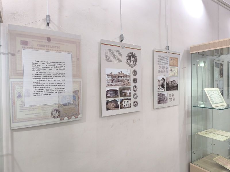 Във витрините посетителите могат да видят над 50 експоната – сред тях юбилеен химн на Априловската гимназия от 1925 г., ученическа униформа от 1922 г., тромпет от Първа мъжка гимназия в София (1930 г.), ученическа книжка от 30-те години, знамена, печати и други символи на училищния живот. Изложбата обръща внимание и на дейността на ученическите и младежките дружества – „Юнак“, БМЧК, въздържателни и християнски дружества, скаути.