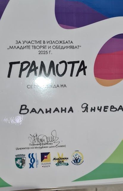 В Сливен наградиха младежи, участвали със свои картини в изложбата „Младите творят и обединяват“