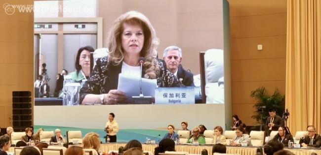 Събитието, организирано от Китай и ООН-Жени по повод 30 години от приемането на Пекинската декларация за правата на жените, събра над 800 участници от целия свят. В изказването си Йотова припомни, че равенството между половете е държавна отговорност и ключ към развитието, но въпреки постигнатия напредък, различията между мъжете и жените в икономиката и социалния живот остават осезаеми.