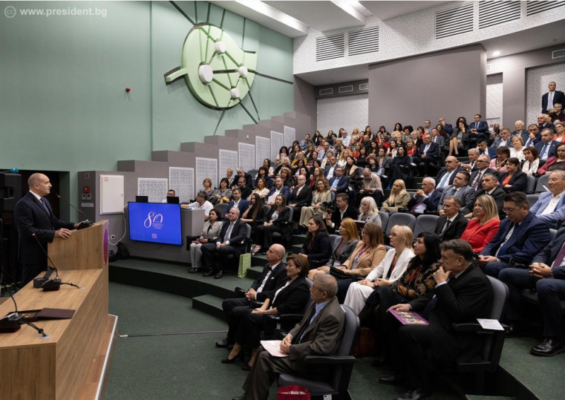 Президентът Румен Радев участва в тържественото отбелязване на 80-годишнината на Медицинския университет в Пловдив. По време на събитието, което се проведе в Центъра по растителна системна биология и биотехнология, бяха представени иновативни методи на обучение, а сред гостите присъстваха представители на академичната общност, държавната и местната власт.