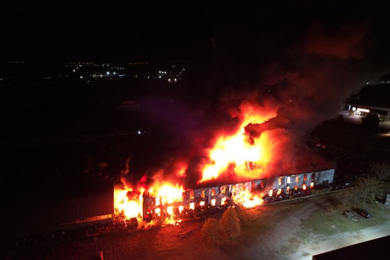 Според видео, заснето от очевидец, пламъците са обхванали голяма част от обекта, като вероятно горят авточасти и разкомплектовани автомобили. В района е налице силно задимяване.