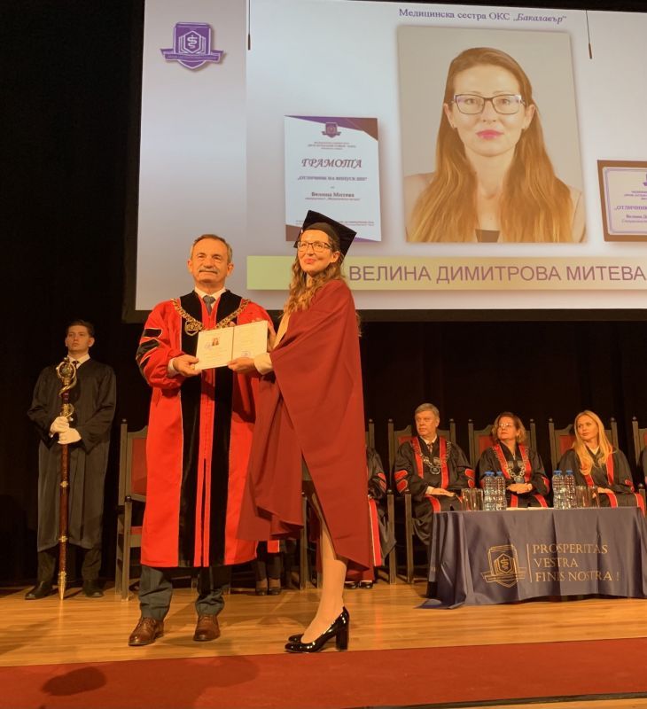 Ректорът на МУ – Варна, проф. Димитър Райков, връчи дипломите на завършващите, а първенци на випуска станаха Велина Митева и Ана Ангелова.