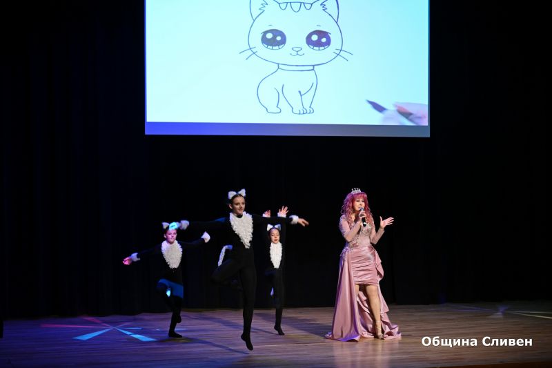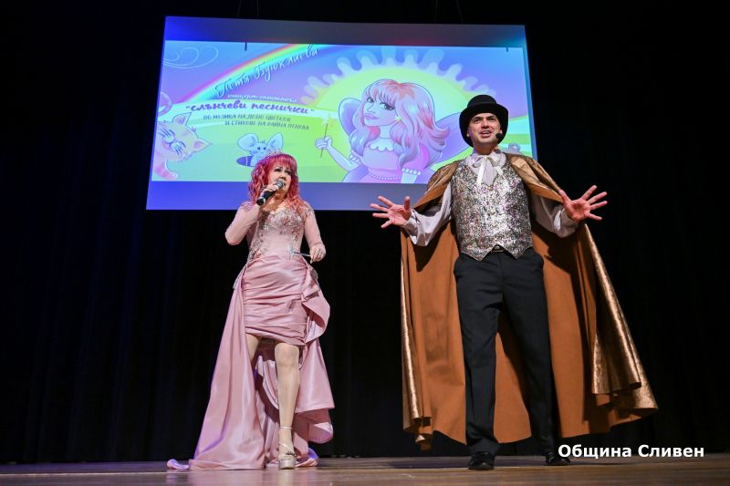 Залата „Сливен“ днес се превърна в приказен свят, изпълнен с усмивки и музика, благодарение на концерт-спектакъла „Слънчеви песнички“ на популярната певица Петя Буюклиева. Събитието бе част от празничната програма на Община Сливен за Димитровден.