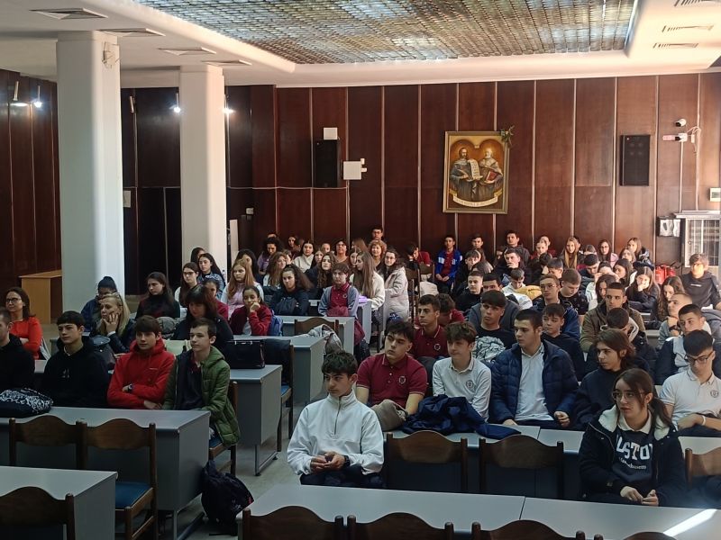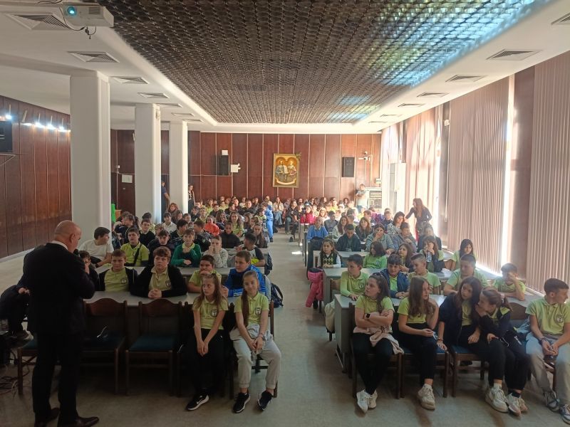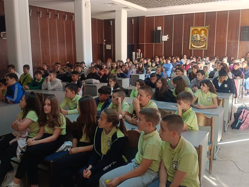 Първата беседа се проведе в зала „Май“, като акцент бе поставен върху превенцията на кибертормоза и запознаване с конкретни примери за онлайн заплахи. Учениците имаха възможност да обсъдят актуални теми и да задават въпроси на експерта.