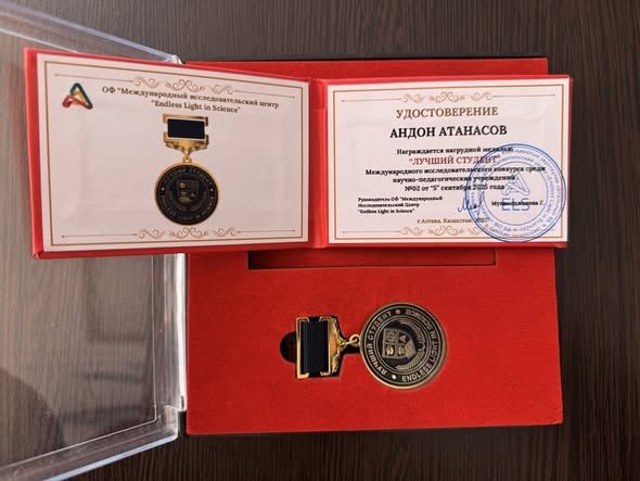 На 25 август 2025 г. в Астана, Казахстан, той беше отличен с два златни медала от Международния конкурс „Най-добър студент 2025“, организиран от Международния изследователски център „ENDLESS LIGHT in SCIENCE“ (ELS). Форумът отличава млади хора с изявени научни и творчески постижения и стремеж към развитие и откривателство.