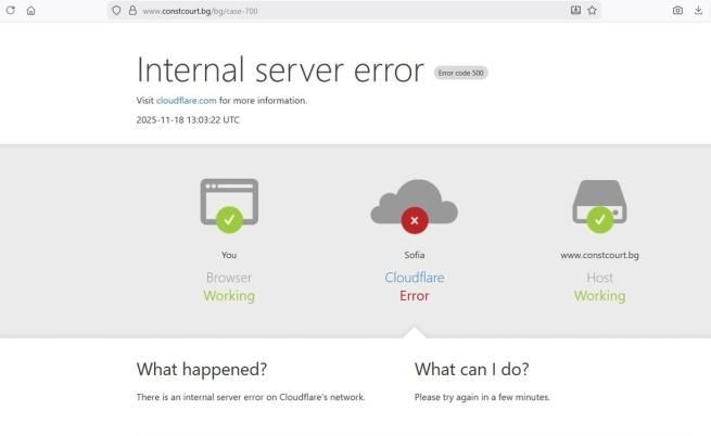 Cloudflare заяви в 13:48 ч., че е наясно със ситуацията и я разследва, тъй като е възможно да засяга множество клиенти. Компанията обеща допълнителна информация, когато има такава. Малко след 14:00 ч. тя потвърди, че разследването продължава.