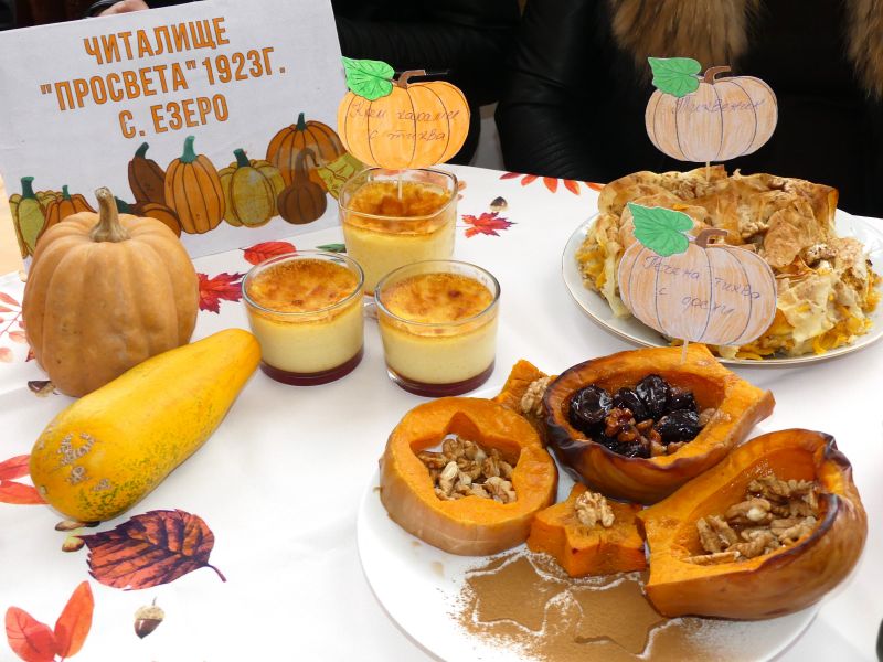 Посетителите можеха да се насладят на впечатляващи кулинарни изкушения от тиква – тиквеници, сладкиши, торти и други вкусотии, подредени на красиво изложени маси. На събитието присъстваха кметът на община Нова Загора Галя Захариева, нейни заместници и кметове на малки населени места.