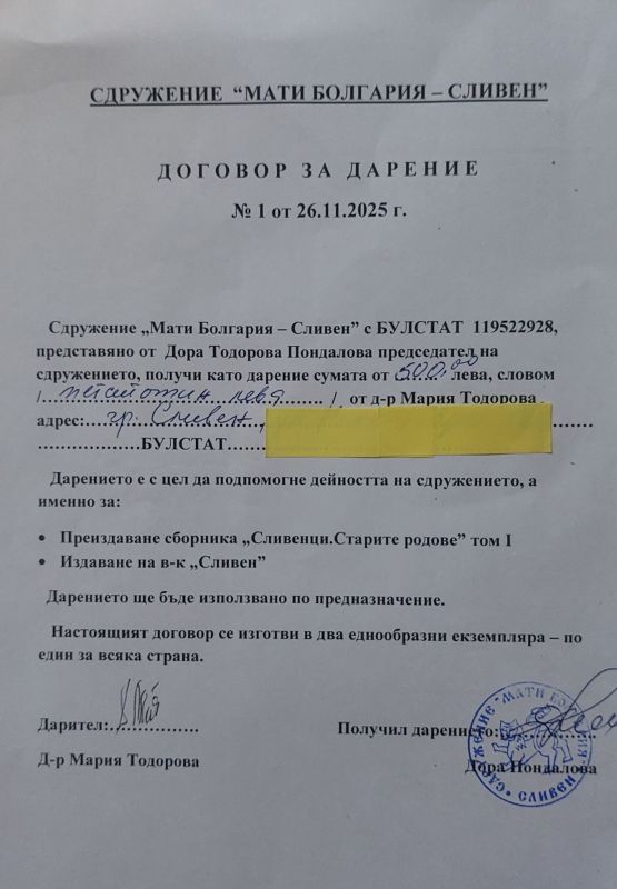 Д-р Мария Тодорова дари средства на „Мати Болгария“ – Сливен за подкрепа на местни културни издания