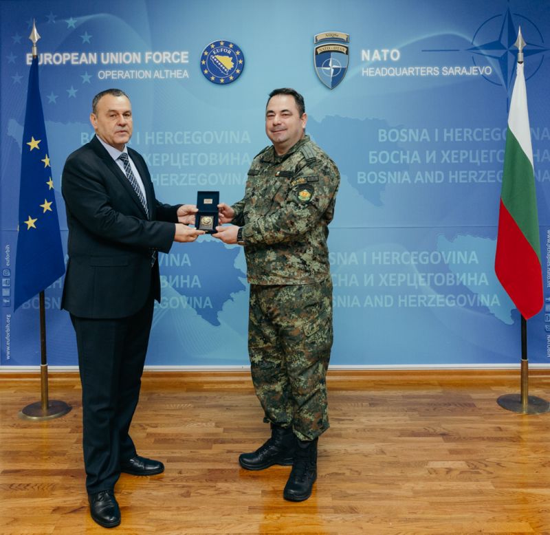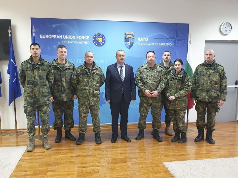 Заместник-министърът на отбраната Радостин Илиев посети щаба на операция „Алтея“ в Сараево, където се срещна с командира на EUFOR генерал-майор Флорин-Мариан Барбу и с българските военнослужещи в мисията. По време на разговора Илиев подчерта, че ангажиментът на ЕС към Западните Балкани е ключов за сигурността, политическия напредък и икономическото развитие на региона, а за България това остава приоритет. Той увери, че страната ни ще продължи активно да подкрепя усилията на EUFOR за стабилността на Босна и Херцеговина.