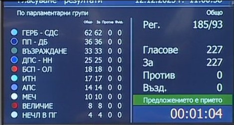 Кабинетът „Желязков“ официално подаде оставка след 11 месеца управление. Народното събрание гласува единодушно с 227 гласа „за“ оттеглянето на премиера Росен Желязков, което беше обявено на 11 декември след заседание на Съвета за съвместно управление и масовия протест на 10 декември в София и страната. Решението за оставка дойде след шестия вот на недоверие, който не успя да събере необходимите 121 гласа, като премиерът посочи, че протестът е бил срещу арогантността и самонадеяността на управлението, а не социален протест, а исканията на гражданите трябва да бъдат чути.