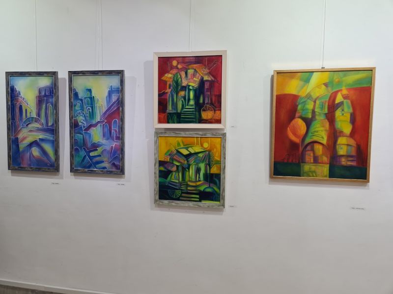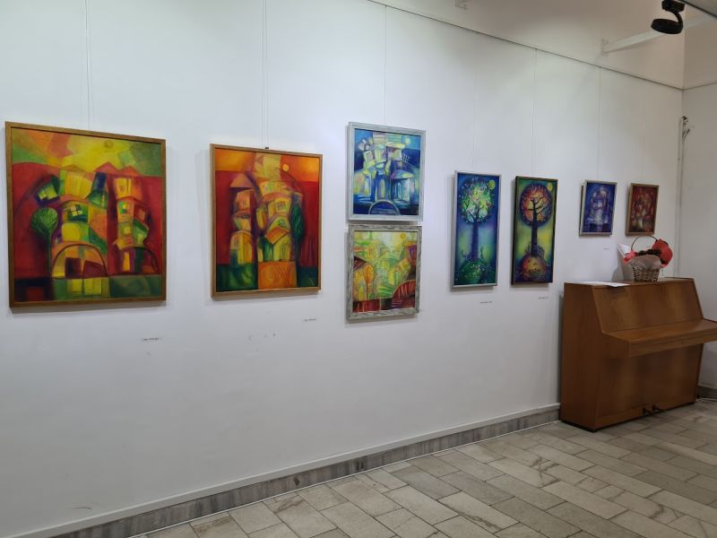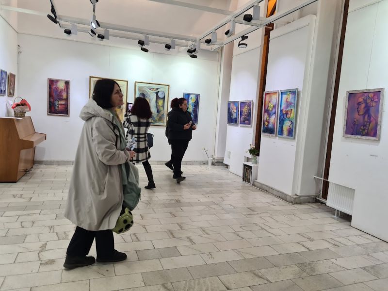 В експозицията посетителите могат да видят изящен батик върху коприна и да усетят посоките на творческите ѝ търсения в живописта.