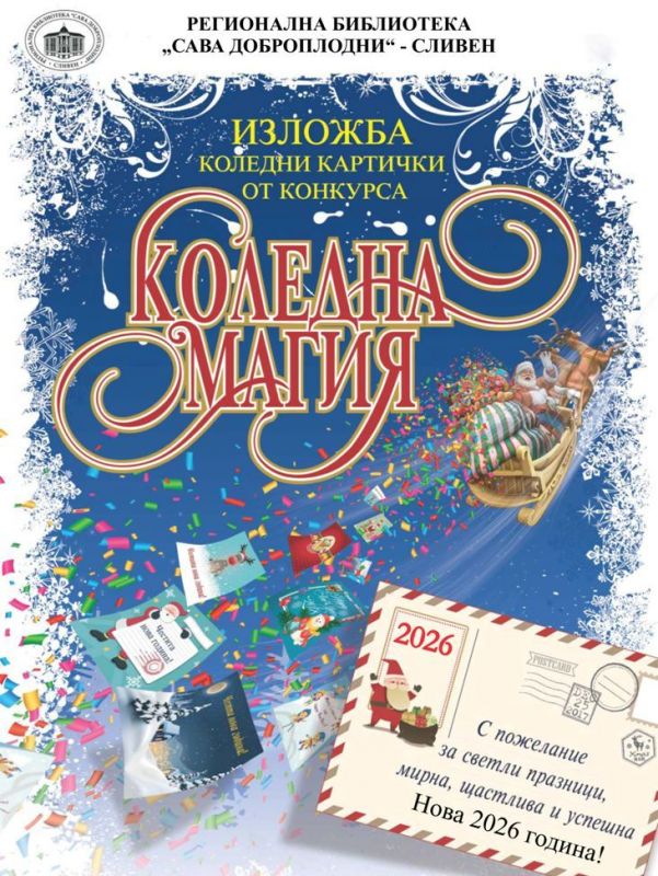Програмата „Коледа в библиотеката“ – 2025 на Регионална библиотека „Сава Доброплодни“ в Сливен завърши с награждаването на победителите в конкурса за коледна картичка и оригинално коледно пожелание „Коледна магия“ – 2025.