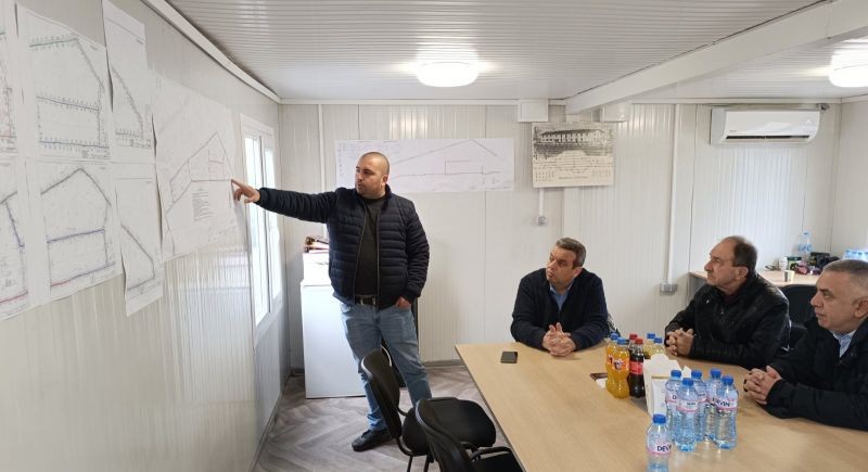 Кметът на Сливен Стефан Радев посети обекта, за да се запознае на място с напредъка по проекта, заедно с представители на фирмата-изпълнител Петко Геров и Димитър Друмев.