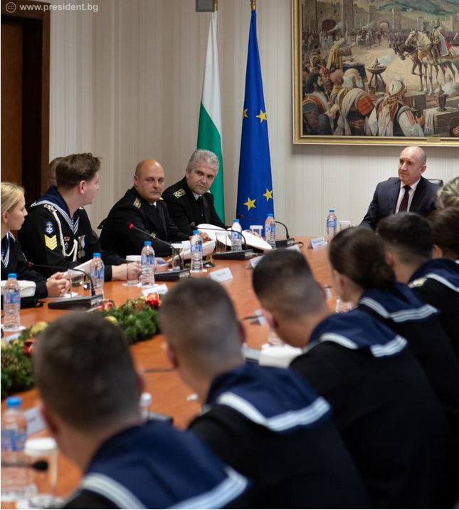 Родолюбието, високият професионализъм и обичта към морето са непреходни качества на българските военноморски офицери, а традициите и връзката между поколенията са основната сила на Военноморските сили. Това заяви президентът и върховен главнокомандващ на Въоръжените сили Румен Радев по време на церемония в Гербовата зала на „Дондуков“ 2, където връчи Почетния знак на президента на трима офицери. Събитието се проведе в навечерието на 145-годишнината на Висшето военноморско училище „Н. Й. Вапцаров“, основано през 1881 г., а присъстваха и курсанти, които проведоха среща с президента.