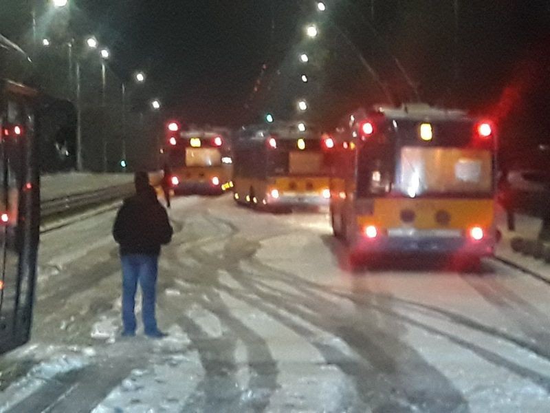 Движението на тролейбусни линии 1 и 5 и автобуси 74, 77, 82, 86 и 101 вече е възстановено, но трамвай №6 остава спрян заради заледени релси. Паралелно с това продължава почистването на спирките и велоалеите в столицата.