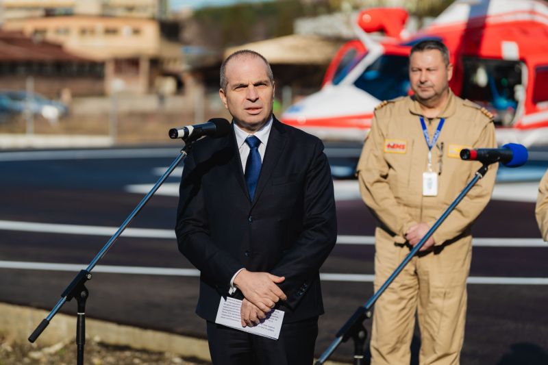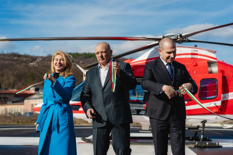 „България Хели Мед Сървиз“ вече разполага с четири медицински хеликоптера, като до юни 2026 г. флотът ще достигне осем. Два от тях са оборудвани с лебедки за труднодостъпни терени, където времето за реакция е решаващо. Караджов подчерта и значението на частната инициатива за развитието на националната система.