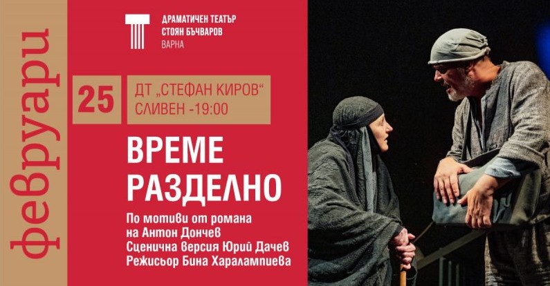Премиерният спектакъл „Време разделно“ на Варненския драматичен театър ще гостува в Сливен на 25 февруари 2026 г., като представлението ще се състои на сцената на ДТ „Стефан Киров“.