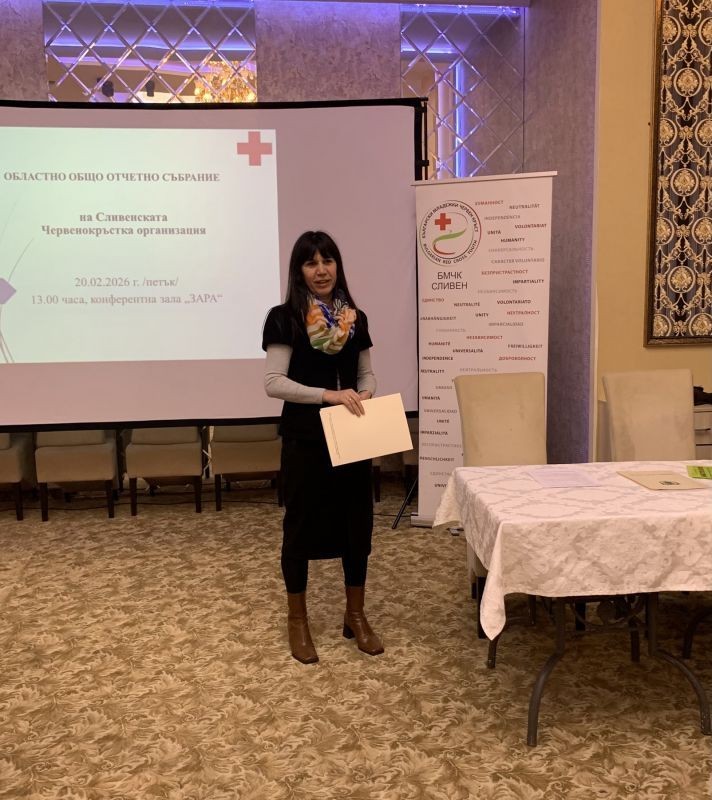 Заместник-областният управител Фатме Мустафова присъства на отчетната сесия на областното събрание на Български червен кръст - Сливен, която се проведе на 20 февруари. Тя поздрави участниците и връчи от името на областния управител Чавдар Божурски приветствие към червенокръстците, в което се подчертава значението на доброволческата и безвъзмездна помощ и ролята на младежите в инициативите на организацията.