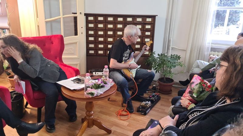 За доброто настроение на гостите се погрижи нейният съпруг Светлин Пешев, който изсвири на китара някои свои авторски композиции.